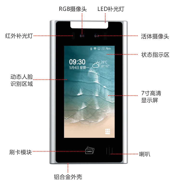 SDXA507R是一款高性能嵌入式人脸识别终端,分为闸机安装、壁挂安装和落地安装。终端集成脱机人脸识别、身份核验、黑名单预警、陌生人抓拍、活体检测等功能为一体,采用宽动态高清人脸识别摄像头,在逆光弱光等苛刻环境适应性强,具有识别速度快、准确率高、名单库容量大等特点。可搭配人脸工地实名制管理系统、人脸门禁考勤管理系统、访客管理系统、智慧社区/园区管理平台等应用管理系统使用,完美适用于社区、校园、景区、酒店、商场、企业办公写字楼、公共服务场所、建筑工地等需要进行身份识别和门禁通行控制的复杂应用场景。