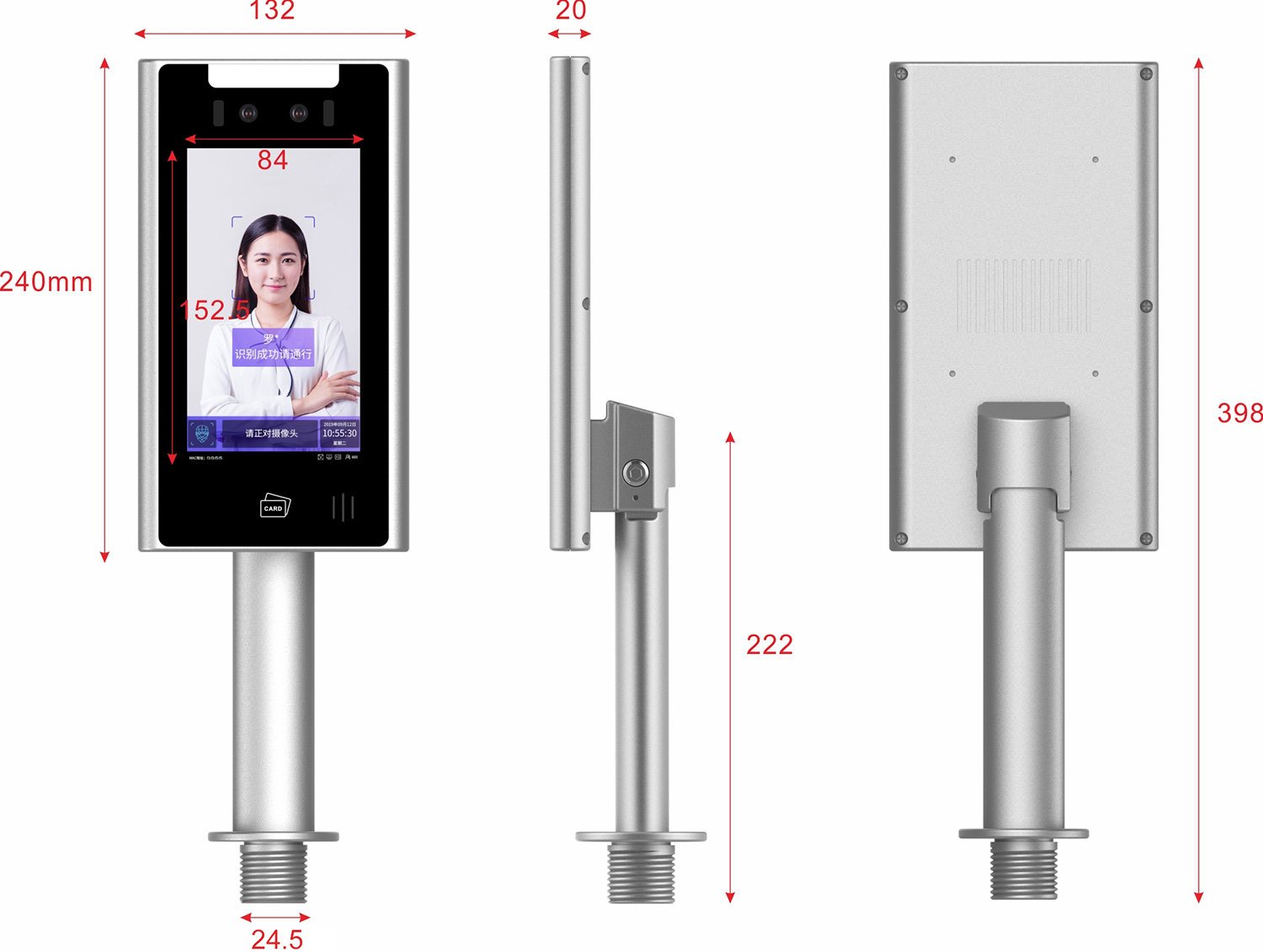 机身尺寸 | 240*132*20mm(长*宽*厚) | 398*132*20mm(长*宽*厚,含闸机支架) | |