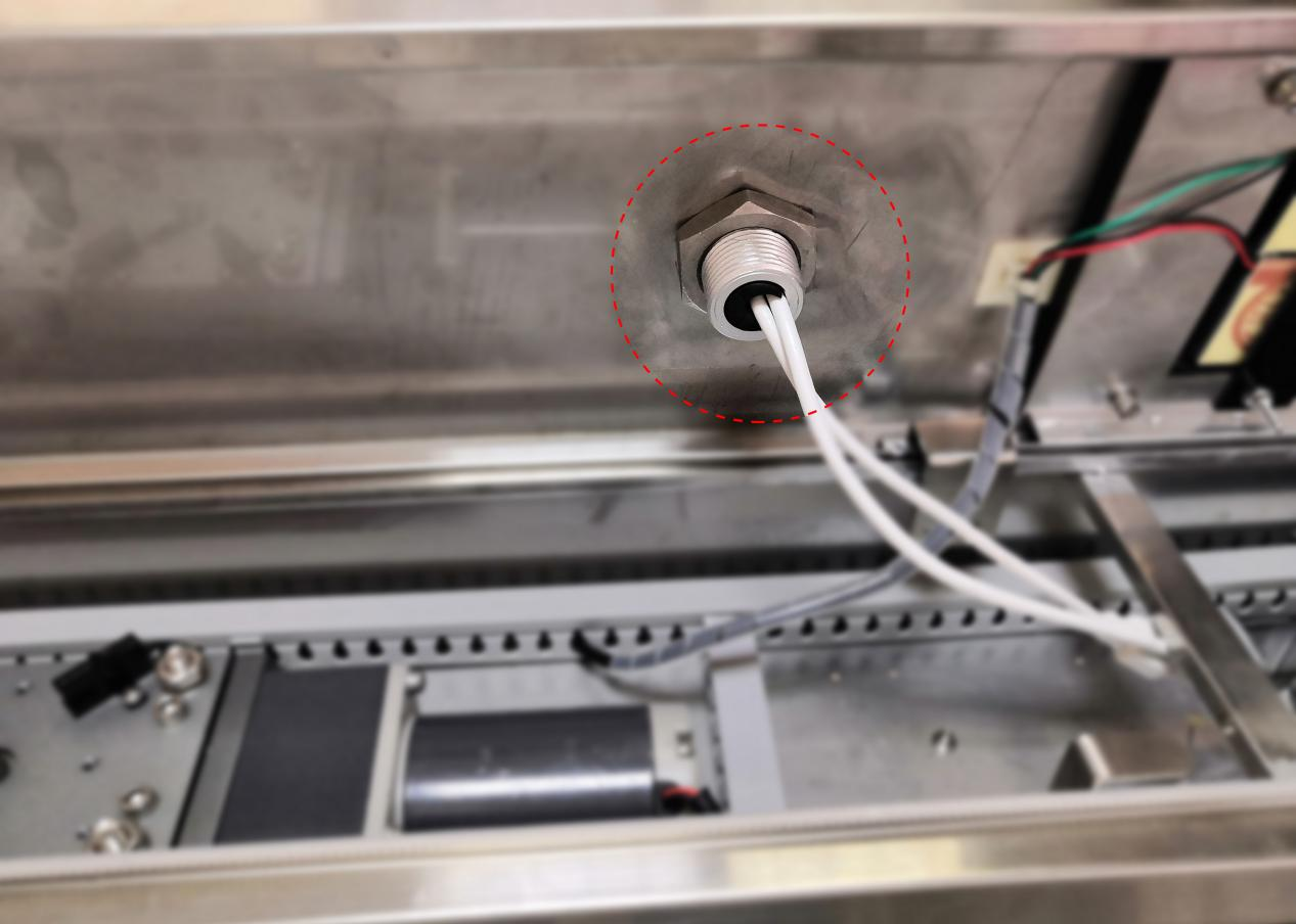 安装时,拧下设备立柱下方的螺母,将线缆从螺母和垫片穿出,取下螺母和垫片(注意:此时不要连接网线、电源线等,避免安装麻烦)。