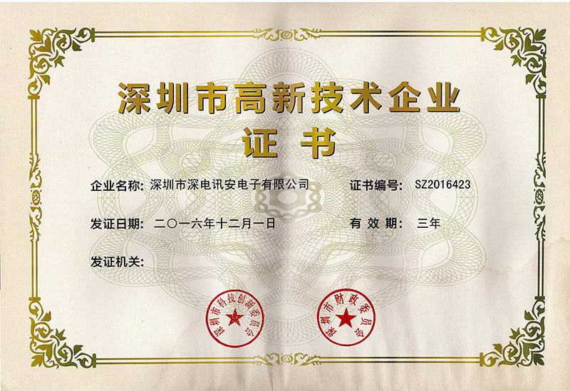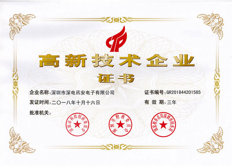 深圳市高新技术企业认证,2018年获得国家高新技术企业认证。产品覆盖了智能安防一卡通、智能照明控制、自适应调光控制系统及智能传感器等,拥有近